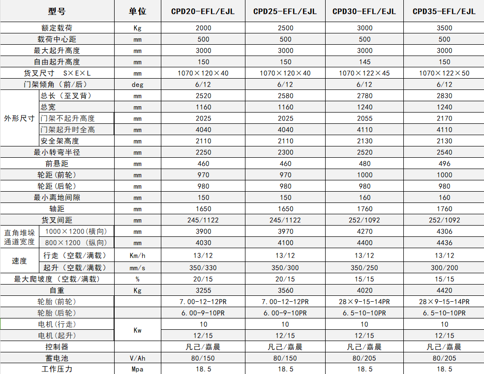 CPD30/35-EFHL整机性能与内燃车相同,标配405Ah电池,作业高效,续航持久;
