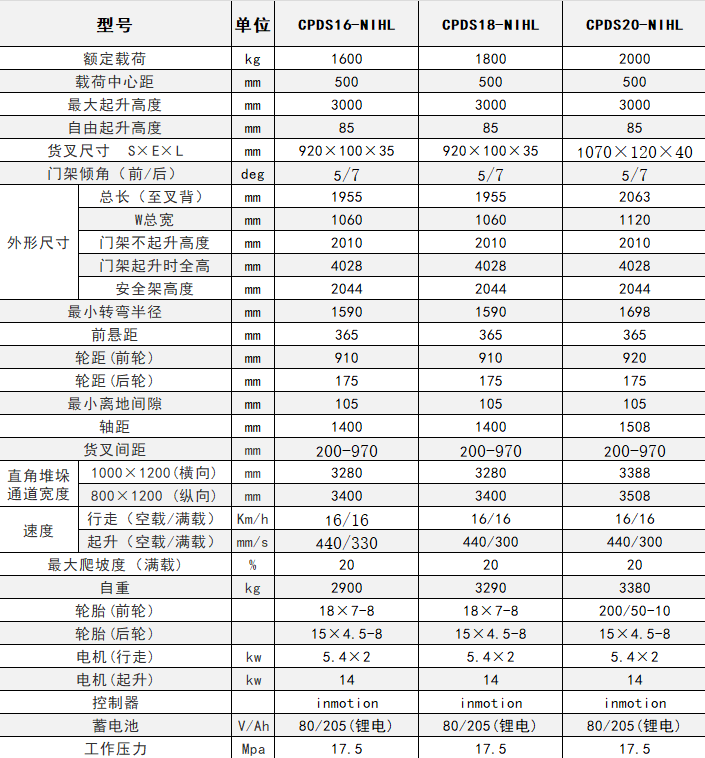 CPDS16-NIHL CPDS18-NIHL CPDS20-NIHL1600 1800 2000500 500 5003000 3000 300085 85 85920×100×35 920×100×35 1070×120×405/7 5/7 5/71955 1955 20631060 1060 11202010 2010 20104028 4028 40282044 2044 20441590 1590 1698365 365 365910 910 920175 175 175105 105 1051400 1400 1508200-970 200-970 200-9703280 3280 33883400 3400 350816/16 16/16 16/16440/330 440/300 440/30020 20 202900 3290 338018×7-8 18×7-8 200/50-1015×4.5-8 15×4.5-8 15×4.5-85.4×2 5.4×2 5.4×214 14 14inmotion inmotion inmotion80/205(锂电) 80/205(锂电) 80/205(锂电)17.5 17.5 17.5
